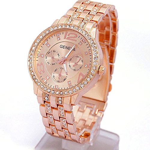 Jiam® Montre Quartz Genève Bling Quartz Acier inoxydable Bracelet Cristal Montres (Contenant une pile bouton)-Or Rose Cela peut éventuellement s’agir de rechange montres votre choix