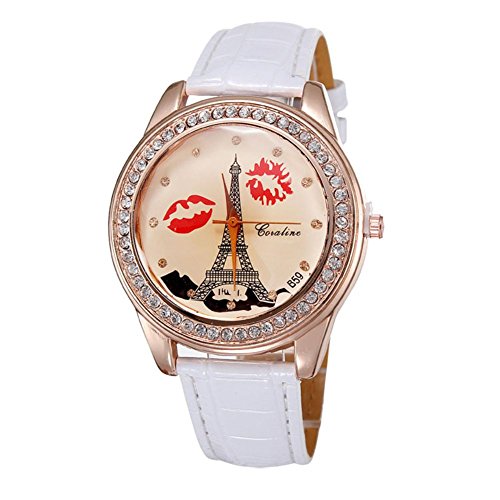 Dames de la mode personnalisés montres impression de lèvre et la Tour Eiffel montre motif quartz - blanc Cela peut éventuellement s’agir de rechange montres votre choix
