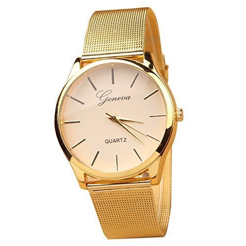 XLORDX Geneva Montre Bracelet Or Maille Acier Inoxydable Quartz Femme Unisexe Wrist Watch Mode Ce mai éventuellement s’agir de rechange montres votre choix