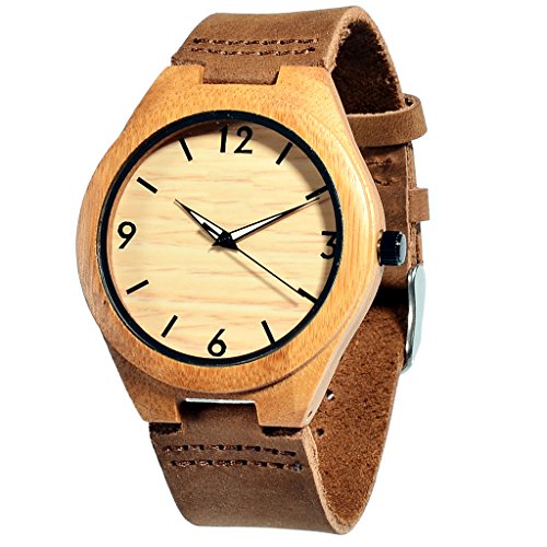 Affute Bambou Bois unisexe Montres avec bracelet en cuir všŠritable Mouvement Quartz analogique avec Miyota qualitšŠ Cela peut éventuellement s’agir de rechange montres votre choix