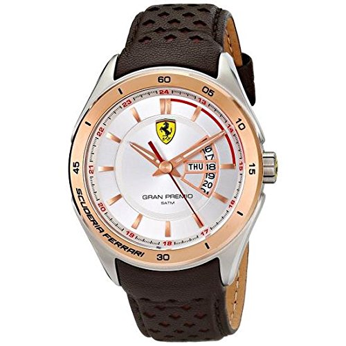 Ferrari Homme Bracelet Cuir Boitier Ton-Or - en Acier Inoxydable Quartz Cadran Argent Montre 0830184 Cela peut éventuellement s’agir de rechange montres votre choix