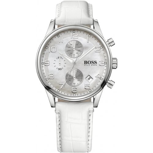 - Hugo Boss Montre Femme - 1502225 - Quartz Chronographe - Cadran Nacre - Bracelet Cuir Blanc