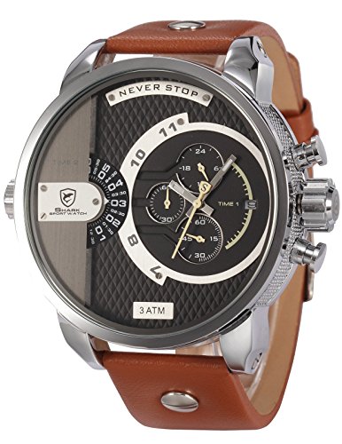 SHARK Montre Homme Sportive Bracelet Cuir Quartz Date ... SH162- Army Montre Sport Homme - Grand Cadran ... Double Temps/ Date /Chronographe - Bracelet Cuir Marron ...