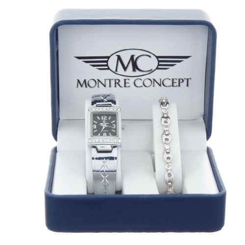 ... pour Montre Concept - Coffret Cadeau CB1 - bracelet - Montre Analogique Femme - Bracelet Acier inoxydable Argent - Cadran Rectangulaire Fond Noir sur Amazon.fr ...