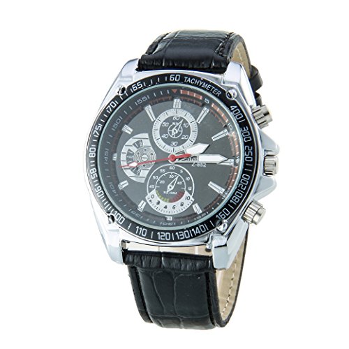 Tangda Montre à Quartz Analog Bracelet en Cuir Noir Cadran Mode Homme Noir Boucle Ardillon Simple Cadeau Cette puissance éventuellement s’agir de rechange montres votre choix